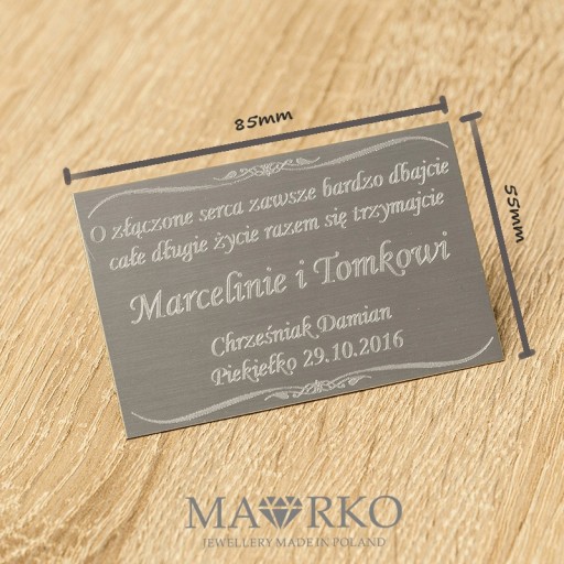 - Możliwość wklejenia blaszki w pudełeczko prezentowe dostępne na pozostałych naszych aukcjach