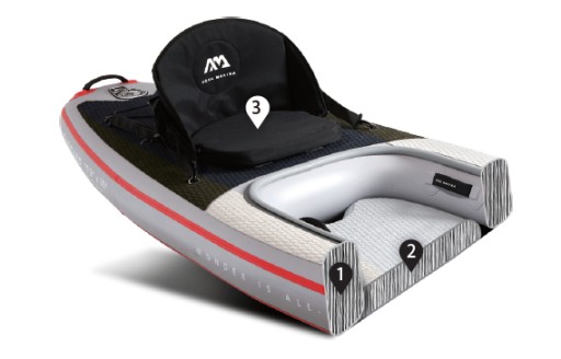 - Wysokie siedzisko kajakowe klasy premium zapewniające oparcie dla pleców i komfort podczas pływania
