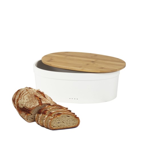 - dobrze wykonany pojemnik na pieczywo w tradycyjnym wzornictwie wykonany z białej ceramiki