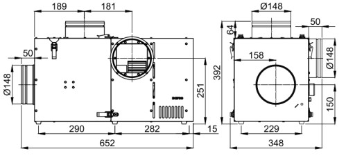 ⏩ Aparat nawiewny posiada odizolowany termicznie i akustycznie wentylator nadmuchujący powietrze, co zmniejsza hałas i zwiększa komfort użytkowania.