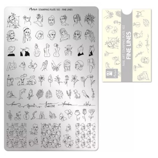 - Płytkę przemywamy Plate Cleanerem lub zmywaczem bezacetonowym, następnie na wybranym wzorze robimy poziomą linię lakierem Moyra Stamping i przeciągamy ją przez wybrany wzór scraperem.