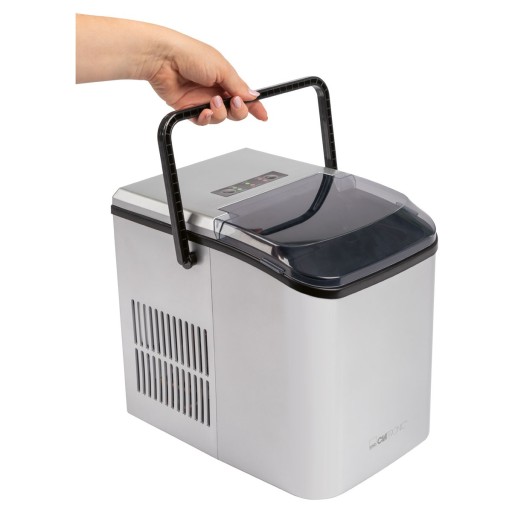 Clatronic EWB to kompaktowa kostkarka do lodu, która pomaga w przygotowaniu chłodnych napojów na przyjęciu i wszędzie tam, gdzie chcemy uzyskać odpowiednio schłodzone napoje. Pojemność zbiornika wody to 1.5 litra - w ciągu doby urządzenie potrafi wytworzyć ok. 8-12 kg lodu. Obsługa urządzenia jest niezwykle prosta - sprowadza się do wlania wody, wciśnięcia przycisku i odczekania około 10 minut - tylko tyle wystarczy, aby móc otrzymać gotowe kostki lodu i dodać je do ulubionego napoju. O wszelkich czynnościach wymagających ingerencji poinformuje kontrolka LED i sygnał dźwiękowy. Kostkarka zajmuje niewiele miejsca, dzięki czemu śmiało można z niej korzystać w domu, biurze, czy małej gastronomii lub kamperze.