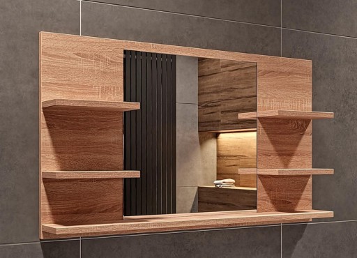 Modne i funkcjonalne lustro z półkami i oświetleniem LED dąb sonoma 80/50