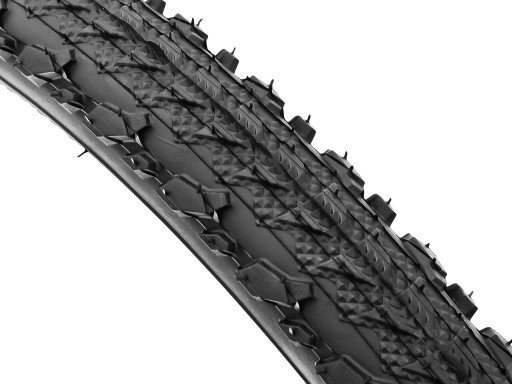 Opona wykazuje znaczną odporność na ścieranie. Powiększone klocki boczne dla lepszej przyczepności w zakrętach. Bieżnik doskonale sprawdzi się na: ubitej ziemi, asfalcie, lekkim szutrze i leśnych duktach.