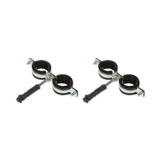 Obejma do rur z kołkiem, tłumikiem drgań i przekładką pomiędzy zaciskami