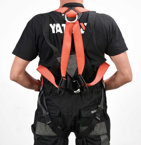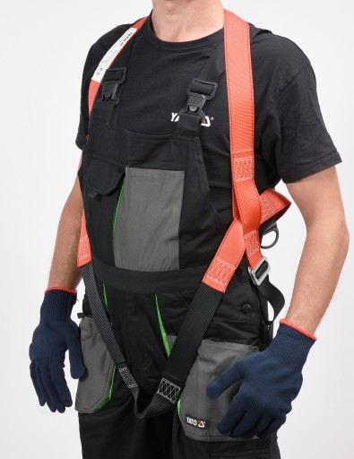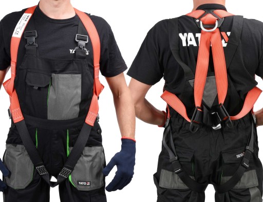 Szelki bezpieczeństwa marki YATO, przeznaczone do zabezpieczenia osób przed upadkiem z wysokości.