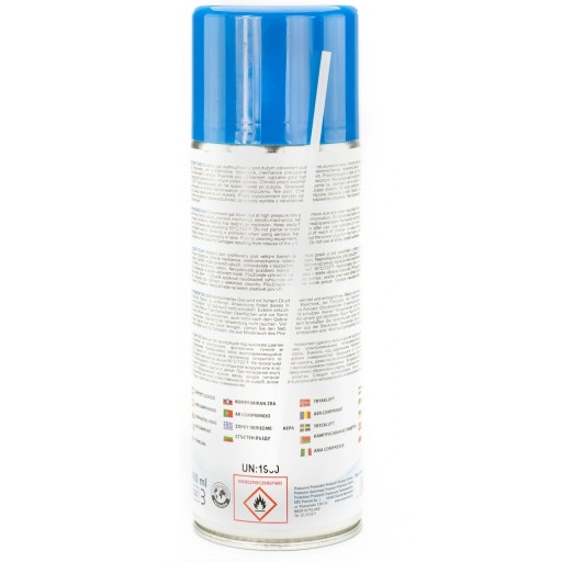 Sprężone powietrze do usuwania zanieczyszczeń z trudno dostępnych miejsc. Łatwość oraz duże bezpieczeństwo użycia pozwala na nieinwazyjne usuwanie zanieczyszczeń z urządzeń elektronicznych, foto-optycznych, mechaniki precyzyjnej, elektromechanicznych i wielu innych. Kurz i inne zanieczyszczenia wydmuchiwane są powietrzem sprężonym pod dużym ciśnieniem. Nie pozostawia żadnych śladów czyszczenia. Pojemność 400ml.