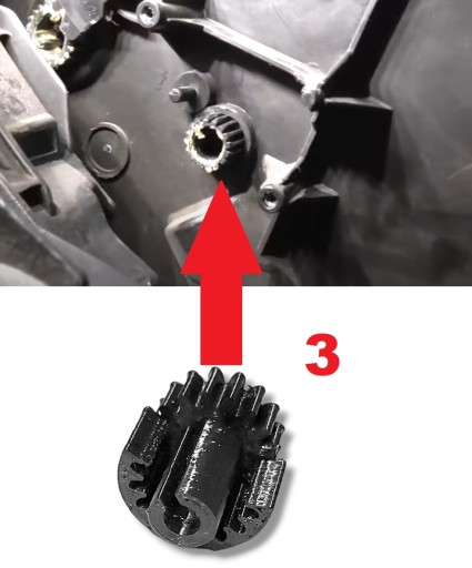 Kiedy już odkręcisz motoreduktor i usuniesz połamany element widoczny na zdjęciu obok: