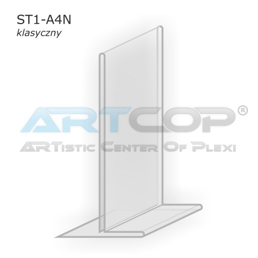 Menu - Stojak dwustronny z plexi typ "T" na opis formatu A4 pion.
