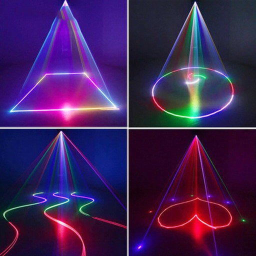 moc lasera: R (czerwony): 500mw (638nm); G (Zielony): 500mw (532nm); B (Niebieski): 1000mw (450nm)