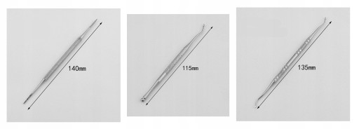 Profesjonalny zestaw trzech dwustronnych łyżeczek do pracy przy wrastających paznokciach stóp i dłoni.