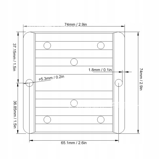 - Rozmiar skorupy produktu: ok. 74 x 74 x 32 mm / 2,9 x 2,9 x 1,3 cala