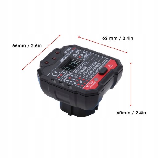 2. Tester gniazdka elektrycznego - Zaawansowany tester gniazdka do szybkiego wykrywania prawidłowego podłączenia elektrycznego gniazdka. Zaprojektowany przy użyciu przycisku testowego RCD / GFCI - gniazdo zasilania jest odpowiednio okablowane i funkcja wyzwalania RCD / GFCI. Może przetestować system ochrony, aby zapewnić bezpieczeństwo elektryczne w domu.