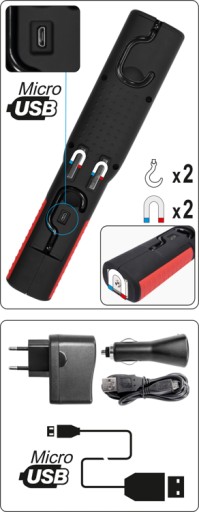 - Magnes: 2 magnesy z tyłu lampy oraz magnes u podstawy lampy