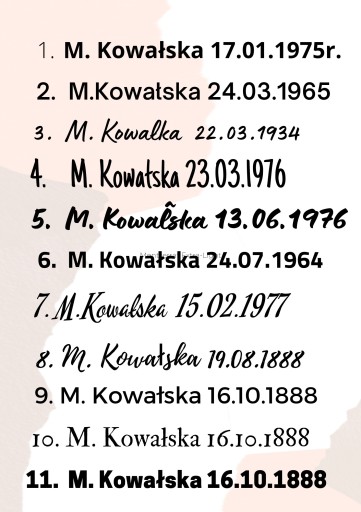 2. nie wpisywanie tekstu drukowanymi (dużymi) literami jeżeli takich nie chcemy , jeśli chcemy aby pismo przypominało odręczne proszę nas poinformować jak ma być drukowane to tez ( w odpowiedniej formie ma być przesłane w pliku, w przypadku wybrania dedykacji własnej .