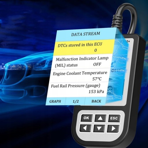 Funkcja: odczyt kodów usterek, kasowanie kodów usterek, wyświetla dane w czasie rzeczywistym strumień i informacje o wersji pojazdu.