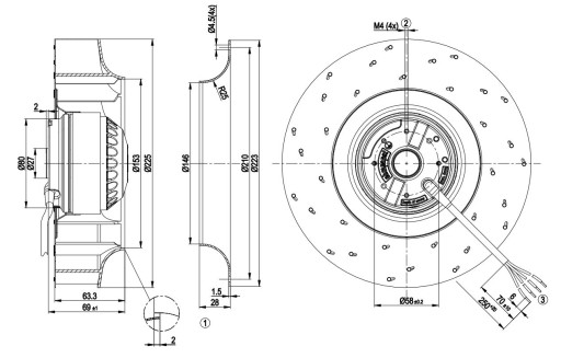 ЦЕНТРОБЕЖНЫЙ ВЕНТИЛЯТОР R4E225-AI01-10 230В 450М3/Ч