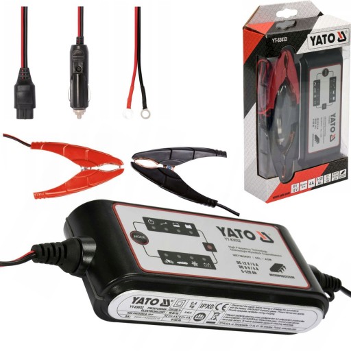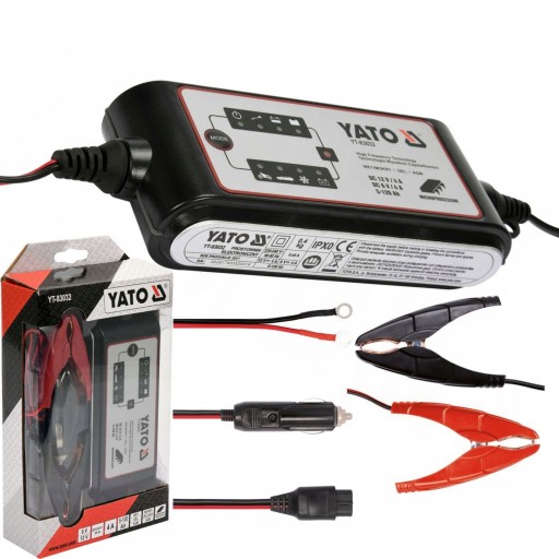 Profesjonalny prostownik YT-83032 do ładowania akumulatorów 6V/12 V w motocyklach, traktorach, samochodach osobowych i dostawczych oraz łodziach motorowych. Posiada funkcję podtrzymywania prawidłowego napięcia w akumulatorach pracujących w trybie spoczynku - ładowanie konserwujące. Prostownik umożliwia naładowanie trzech rodzajów akumulatorów: tradycyjnych kwasowo-ołowiowych, tzw. akumulatorów mokrych, akumulatorów ołowiowo żelowych, gdzie elektrolit jest w postaci żelu oraz akumulatorów AGM, w których mata z włókien szklanych unieruchamia elektrolit. Posiada zabezpieczenie przeciwzwarciowe oraz przeciw przeładowaniu akumulatora. Zastosowany mikroprocesor działa w technologii wysokich częstotliwości.