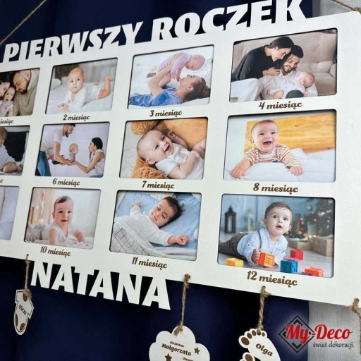 Ramka na 12 zdjęć Pierwszy Rok Prezent. Wprowadzamy Cię w świat niezwykłej ramki na 12 zdjęć, która zachowa wspomnienia z pierwszego roku życia Twojego dziecka i stanie się piękną ozdobą każdego dziecięcego pokoju.