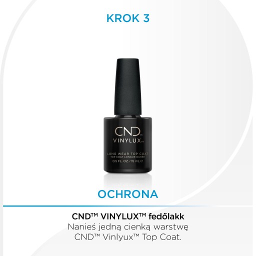 - Zakończ jedną warstwą CND Vinylux Top Coat.
