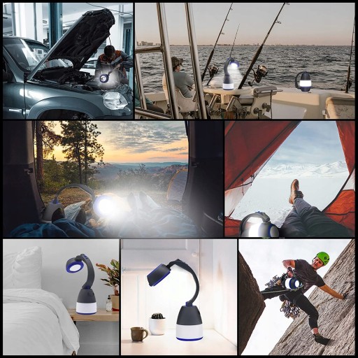 Może być używany jako lampa kempingowa, przenośna lampa, lampa stołowa i zasilanie awaryjne, 4 w 1 funkcja, aby spełnić Twoje wymagania.