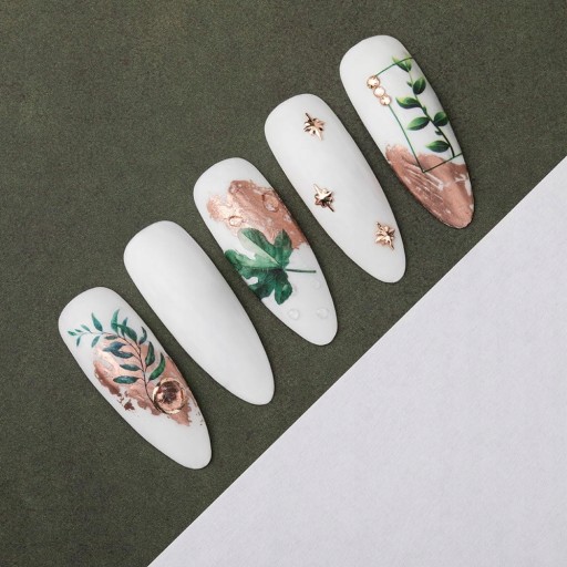 Naklejki nadają się do użycia z lakierami klasycznymi, hybrydowymi oraz żelami uv i akrylożelami.