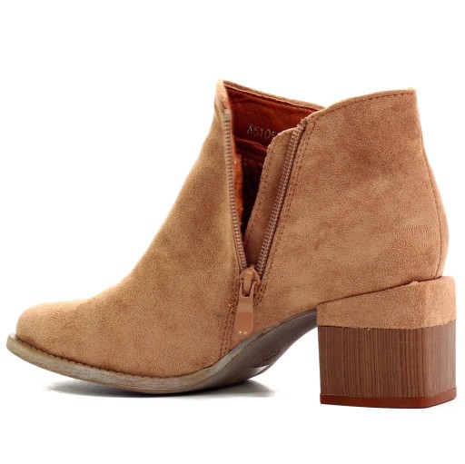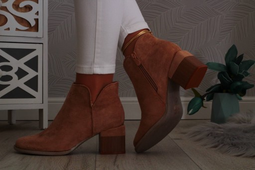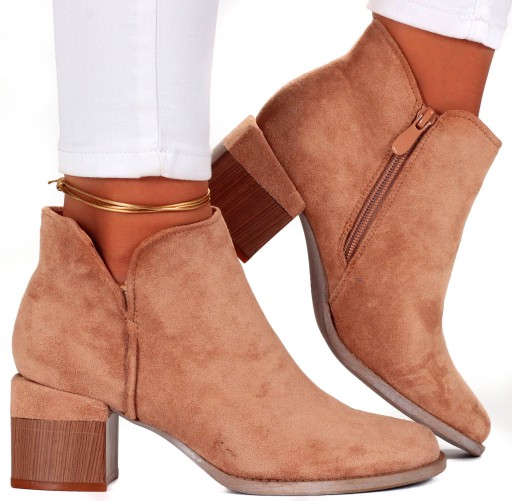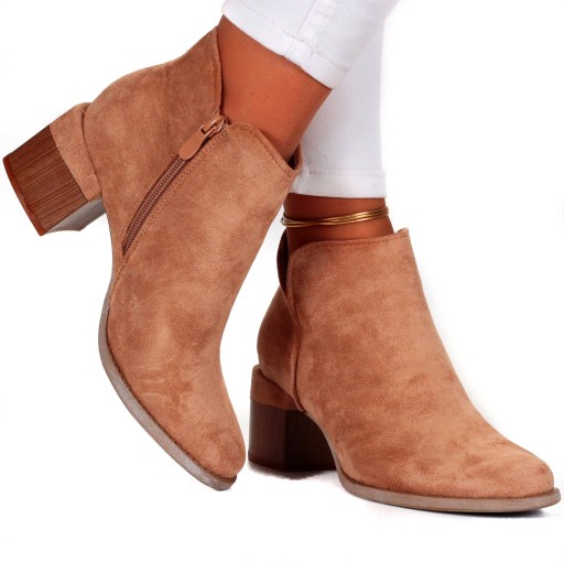Eleganckie botki damskie z zamszu na słupku w kolorze beżowym. 💯 Łatwe w zakładaniu- zapinane na suwak.😍 Wykonane z dobrych jakościowo materiałów. Ocieplane- delikatne futerko. Idealne na wiosnę lub jesień 🍂 Szeroki obcas zapewnia stabilność oraz komfort użytkowania. Modny fason z najnowszej kolekcji 2022 stanie się uzupełnieniem niejednej stylizacji, a stylowe wycięcie doda im szyku.👍