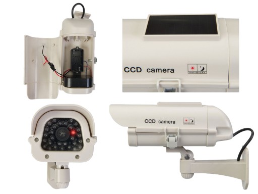 Atrapa kamery to wysokiej jakości imitacja prawdziwej kamery monitoringu CCTV. Migająca czerwona dioda LED sprawia wrażenie monitoringu całodobowego. Dzięki wymiarom tradycyjnej kamery kompaktowej oraz imitacji wbudowanych 28 diod podczerwieni, jest nie do rozpoznania dla jakiejkolwiek osoby postronnej.