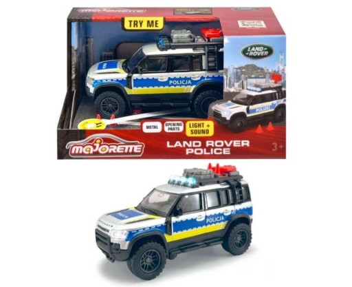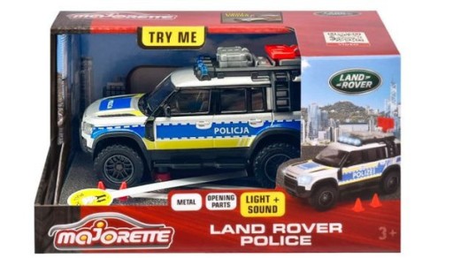 Majorette Seria Grand wytrzymałe pojazdy dostępne w większym wydaniu radiowóz policyjny Grand Land Rover z metalowymi elementami pełen ekscytujących funkcji w skali 143 długość 125 cm OFICJALNY PRODUKT LAND ROVER licencjonowany zabawkowy jeep policyjny 4x4 drobiazgowo odwzorowuje pełnowymiarowy samochód terenowy kultowej brytyjskiej firmy motoryzacyjnej REALISTYCZNE DETALE zabawkowy pojazd szczegółowo odzwierciedla detale i zadziwia różnorodnymi funkcjami jak otwierane tylnie drzwi bagażnik dachowy i ruchome elementy NA KAŻDE WARUNKI trwałe gumowe opony z łatwością poruszają się po każdej nawierzchni dodatkowo pojazd został wyposażony w sygnały ostrzegawcze 4 reflektory na dachu i 2 światła przednie i 2 realistyczne efekty dźwiękowe STALOWA KONSTRUKCJA radiowóz wykonany z metalu dzięki czemu jest odporny na uderzenia działa na baterie 2x15VR03AAA dołączone dostosowane do młodych policjantów od 3 roku życia Nowa kolekcja Grand od Majorette w większej skali 140 143 145 Odkryj wszystkie modele z serii Majorette Grand wybieraj spośród pojazdów służb ratowniczych budowlanych czy miejskich Dziecko zachwyci się ekscytującymi funkcjami i misternie szczegółowo odwzorowane detale gwarantują ciekawym świata dzieciom wciągającą zabawę i fascynującą rozrywkę podczas zanurzania się w pasji do motoryzacji z zamiłowaniem do odgrywania scenek z realizacji zadań specjalnych Miasto czeka na swojego bohatera Czas aby Twój maluch odpalił radiowóz i ruszył do akcji Land Rover policja z serii Grand od Majorette to idealny dodatek do kolekcji aut Twojego dziecka i wspaniały prezent który rozbudza pasję do kolekcjonowania i motoryzacji Pojazd posiada ruchowe elementy fantastyczne funkcje i imponującą mobilność która sprawi że dziecko poczuje się jak prawdziwy stróż prawa i zacznie wyrabiać postawy prospołeczne oraz pozna korzyści płynące z pomagania innym Jeep policyjny Land Rover policja z serii Grand od Majorette zaopatrzony jest w bagażnik dachowy który można otwierać i zamykać odłączane pachołki drogowe ruchomy znak ostrzegawczy drabina otwierane tylne drzwi z kołem zapasowym Przezroczyste szyby dają wgląd w dopracowane wnętrze radiowozu policyjnego Ponadto trwałe gumowe opony z bieżnikiem gwarantują sprawne przemieszczanie się po wymagających nawierzchniach Oprócz misternie oddanych detali jeepa policyjnego Land Lover radiowóz policyjny Grand od Majorette jest również wyposażony 2 migające reflektory i 4 światła ostrzegawcze na dachu kabiny które można włączyć po naciśnięciu na maskę wozu W ten sam sposób uruchamiane są realistyczne odgłosy dźwięk rozpędzonego pojazdu i dźwięk wozu pędzącego na sygnale syreny ostrzegające o pędzącym do akcji pojeździe sprawią że inni użytkownicy drogi natychmiast ustąpią miejsca a to wszystko aby dostarczyć dzieciom jak najwięcej chwil pełnych uśmiechu i niezapomnianej zabawy Wymiary Jeepa długość 125 cm x szerokość 55 cm x wysokość 75 cm Zbierz je wszystkie i stwórz imponującą kolekcję realistycznych pojazdów dzięki serii Majorette Grand Majorette kultowa marka z Francji od 1964 roku oferuje bogatą kolekcję zabawkowych metalowych samochodów i pasujące zestawy parkingowe o różnych motywach od samochodów osobowych monster trucków pojazdów ratunkowych i budowlanych po samochody wyścigowe Kompaktowe metalowe samochody są idealne dla dzieci w wieku od 3 lat i aspirujących kolekcjonerów w każdym wieku