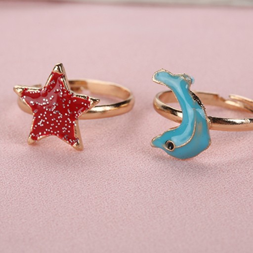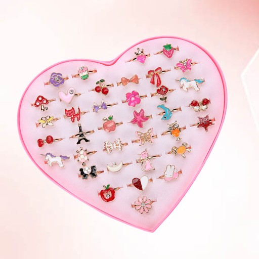 W pełni metalowe pierścionki z kolorowymi ozdobami dobrze wykorzystują się do zabawy, ale także jako pierwsza biżuteria na specjalne okazje.