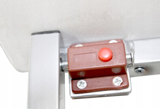 Stolik posiada dwie blokady, które zapobiegają samoistnemu składaniu się zestawu. Jeśli chcesz złożyć stolik wystarczy nacisnąć przycisk.