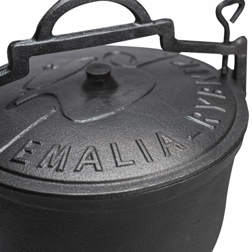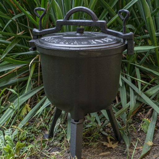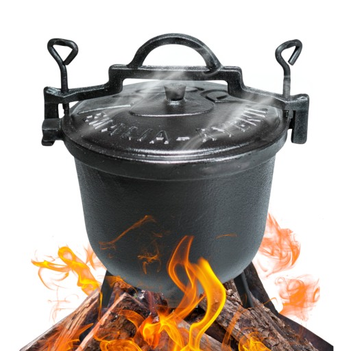 Kociołek stojący wykonany z wysokiej jakości żeliwa o pojemności 8 L to doskonałe naczynie służące do przygotowywania warzyw i mięsa nad ogniskiem. Posiada solidną pokrywę wyposażoną w specjalny otwór, odprowadzający powietrze. Całość misy stabilnie spoczywa na trzech dokręcanych nóżkach.