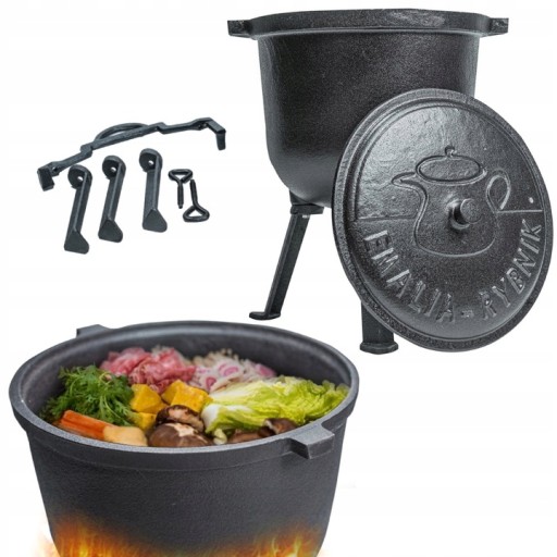 KOCIOŁEK STOJĄCY MYŚLIWSKI ŻELIWNY 10L NA OGNISKO