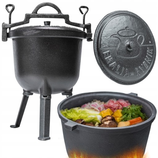ТЯЖЕЛЫЙ ЧУГУННЫЙ ЧУГУЛ ДЛЯ ОГНЯ ВЕНГЕРСКИЙ ОХОТНИЧИЙ ГОРШОК 10Л ДЛЯ ВЫПЕЧКИ