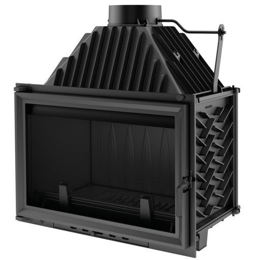 Maksymalne wykorzystanie ciepła odbywa się dzięki gęsto rozmieszczonym radiatorom na ścianach wkładu kominkowego.