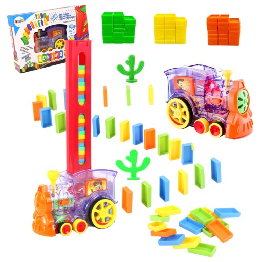 ⭐ Lokomotywa do układania klocków DOMINO wyposażona w światło i dźwięk!