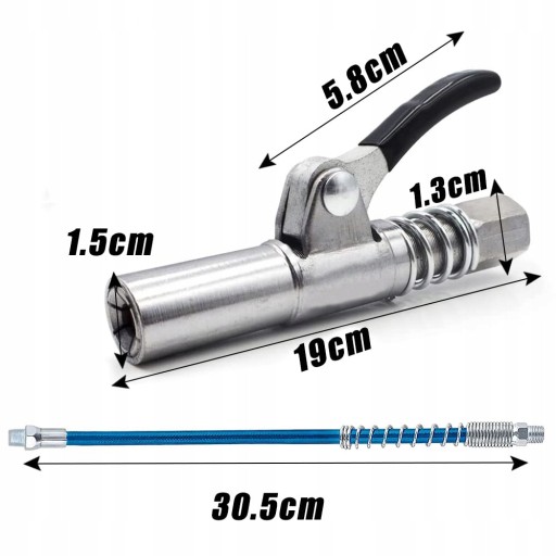 - Rozmiar: 1.3 cm (gwint) 9 cm (długość) 30 cm (długość węża)