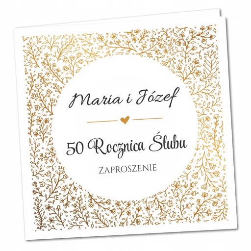 Zaproszenie na Rocznicę Ślubu z delikatną, kwiatową grafiką, wykonane na satynowym papierze o wysokiej gramaturze. Zaproszenie jest w pełni personalizowane. Dodatkowo do zaproszenia dołączona jest koperta.