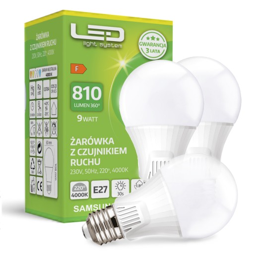 Zestaw zawiera 3x żarówka LED z czujnikiem ruchu.