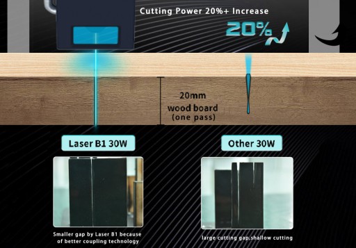 Dłuższy Laser B1 jest wyposażony w nowo ulepszoną 32-bitową płytę główną, umożliwiającą prędkość ponad 36 000 mm/min. W porównaniu do grawerki laserowej o mocy 10 W oferuje 200% wzrost prędkości grawerowania i 150% wzrost głębokości cięcia. W porównaniu do grawerki laserowej o mocy 20 W zapewnia 50% wzrost prędkości grawerowania i 25% wzrost głębokości cięcia, co pozwala na szybsze wykonywanie zadań grawerowania. I może bezpośrednio grawerować lustrzaną stal nierdzewną, ceramikę, nieprzezroczyste szkło i inne materiały.