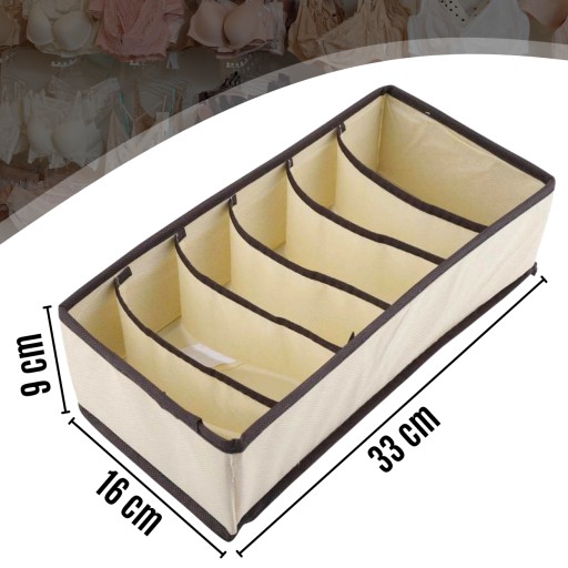 Dzięki 6 osobnym przegródkom perfekcyjnie sprawdzi się do przechowywania skarpet, majtek, biustonoszy czy innych drobnych elementów garderoby.
