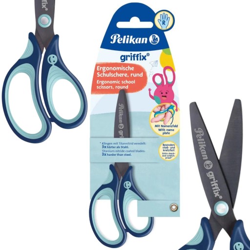Nożyczki zaokrąglone Pelikan Griffix 15cm niebieskie dla praworęcznych
