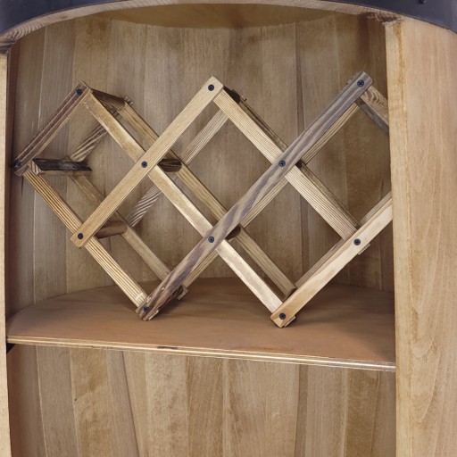 Ten drewniany stojak z łatwością ustawisz w środku drewnianej beczki, na dolnej lub górnej półce. Gdy nie będzie nam potrzebny można go złożyć lub postawić w kuchni, jadalni lub w piwnicy.