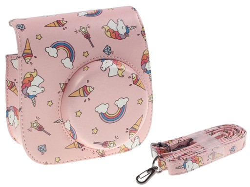 Futerał Instax Mini 8 9 11 Retro - jednorożce, tęcza, różowy