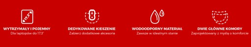 Posiada wystarczająco dużo przestrzeni dla 17,3'' laptopa wraz ze wszystkimi peryferyjnymi akcesoriami. Wyjątkowo trwała i sztywna konstrukcja zapewnia pełne bezpieczeństwo przenoszonego sprzętu.