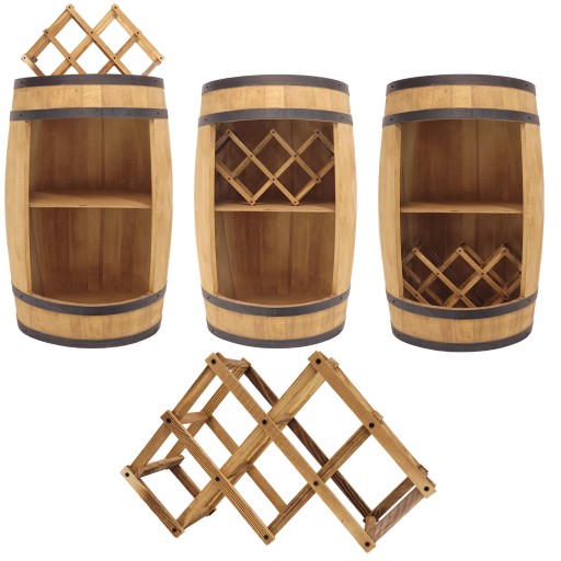 Ten drewniany stojak z łatwością ustawisz w środku drewnianej beczki, na dolnej lub górnej półce. Gdy nie będzie nam potrzebny można go złożyć lub postawić w kuchni, jadalni lub w piwnicy.