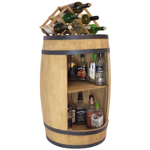 - półka na stojące butelki + na dnie beczki miejsce na stojące butelki