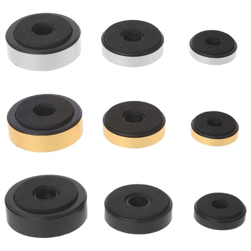 Zestaw 4 sztuk nóżek (tzw. stopek) przeznaczonych do sprzętu RTV, audio video np. wzmacniaczy, amplitunerów, odtwarzaczy CD/DVD itp. Nóżki do wzmacniacza, nóżki do obudowy nadają nowego bardziej okazałego wyglądu sprzętowi audio.