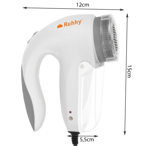- SPECYFIKACJA – 3 ostrza tnące; zabezpieczenie przed uszkodzeniem tkaniny; moc: 5W; zasilanie sieciowe 230V; kabel: 135cm; pojemnik; wymiary: 12/15/5,5cm; waga: 0,225kg; waga w opakowaniu: 0,281kg.