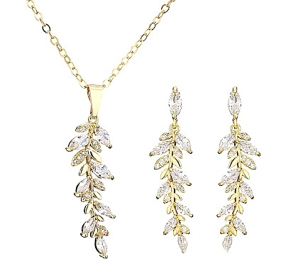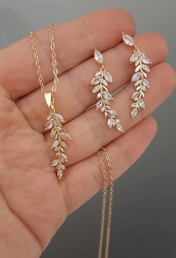 КОМПЛЕКТ ОЖЕРЕЛЬЕ СЕРЬГИ ЛИСТЬЯ ЗОЛОТАЯ СВАДЬБА